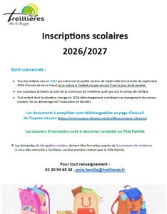 / Inscriptions scolaires mairie de Treillières 2026/2027